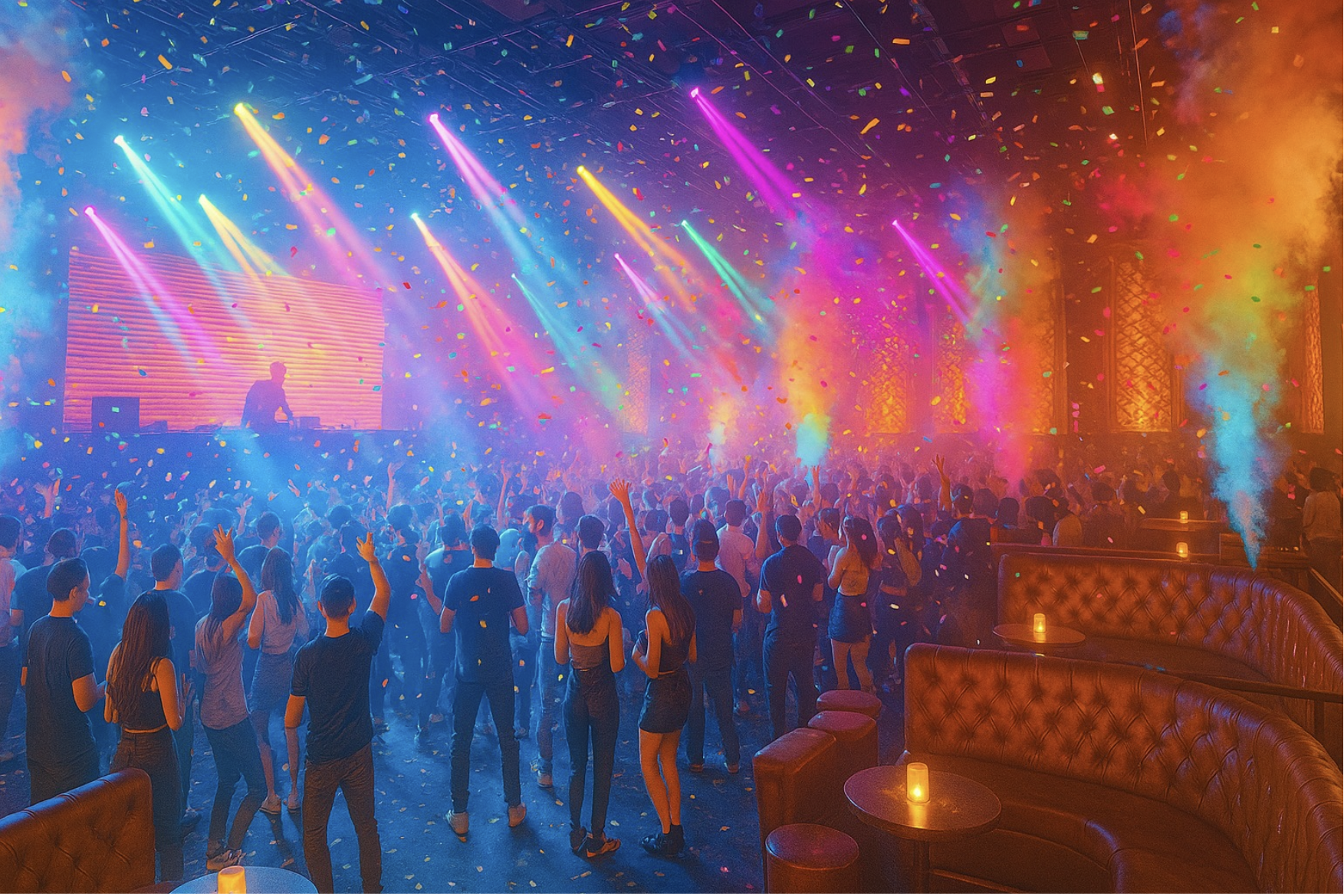 夜遅くになると、人気曲のリミックスでフロアが最高潮に盛り上がります。